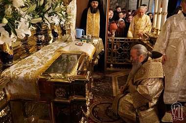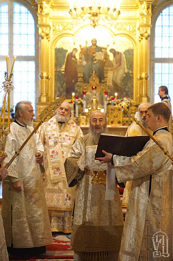 Его Блаженству сослужили митрополит Сергий, митрополит Владимир, архиепископ Иов, а также братия обители в священном сане.