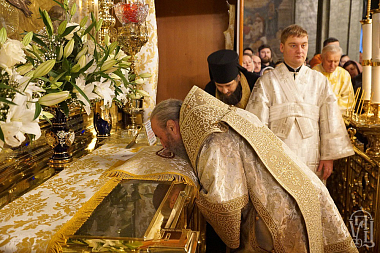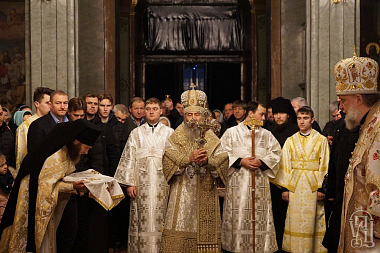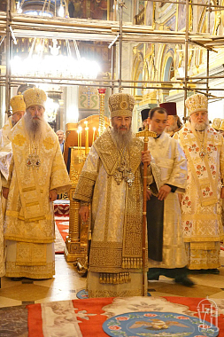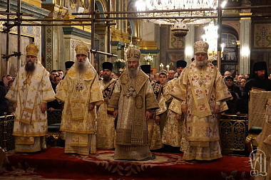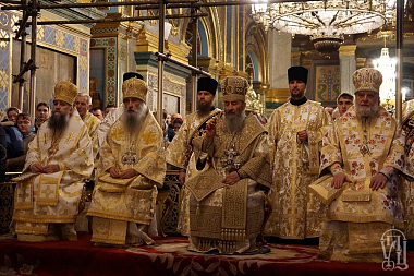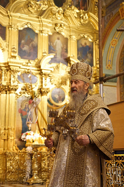 Вечером Предстоятель Украинской Православной Церкви возглавил всенощное бдение в Успенском соборе Лавры.