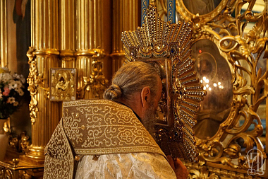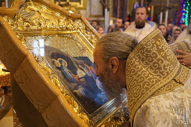 После отпуста Блаженнейший владыка поздравил паству с праздником и обратился к верующим со словом наставления.