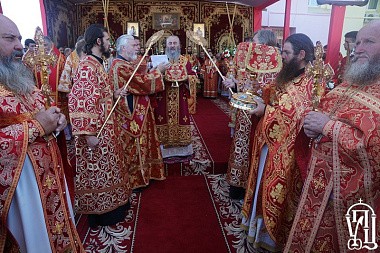 Его Блаженству сослужили митрополит Черновицкий и Буковинский Мелетий, наместник обители епископ Банченский Лонгин, епископ Шепетовский и Славутский Евсевий, епископ Хотинский Вениамин и духовенство Черновицко-Буковинской епархии.