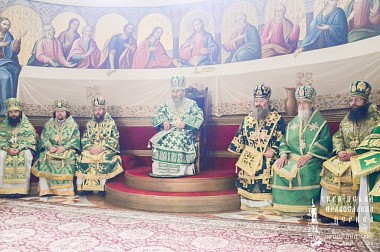 В завершение молебного пения митрополит Павел окропил верующих святой водой, после чего Предстоятель поздравил собравшихся с праздником и благословил всех.