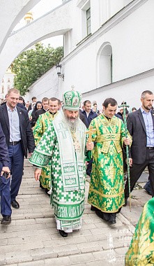 После отпуста духовенство и верующие во главе с Блаженнейшим митрополитом Онуфрием прошли крестным ходом к Дальним пещерам, где на площади состоялся молебен.
