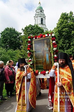 По окончании богослужения состоялся крестный ход, после которого Блаженнейший владыка окропил верующих освященной водой и вознес молитву святителю Афанасию, Небесному покровителю обители.
