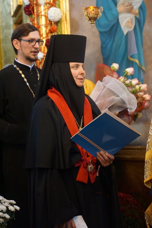 Предстоятель Украинской Православной Церкви поздравил настоятельницу монастыря игумению Фотину (Бондаренко) с 50-летием со дня рождения. В связи с юбилеем и во внимание к усердным трудам на благо Церкви Блаженнейший владыка наградил ее орденом равноапостольной княгини Ольги.