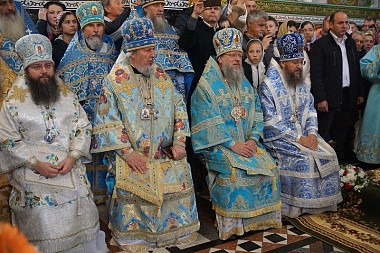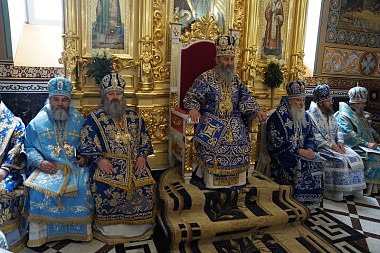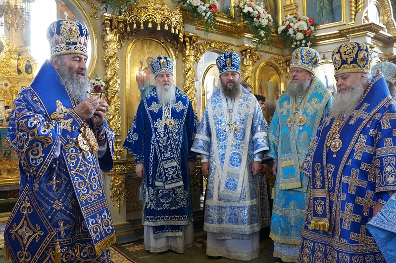 Его Блаженству сослужили митрополит Каменец-Подольский и Городокский Феодор, наместник Киево-Печерской лавры митрополит Вышгородский и Чернобыльский Павел, управляющий делами Украинской Православной Церкви митрополит Бориспольский и Броварской Антоний, митрополит Могилев-Подольский и Шаргородский Агапит, митрополит Черновицкий и Буковинский Мелетий, архиепископ Уманский и Звенигородский Пантелеимон, архиепископ Яготинский Серафим, архиепископ Банченский Лонгин, архиепископ Ирпенский Климент, епископ Шепетовский и Славутский Евсевий, епископ Ивано-Франковский и Коломыйский Тихон, епископ Золотоношский Иоанн, епископ Хотинский Вениамин, духовенство монастыря и Черновицко-Буковинской епархии, гости в священном сане.
