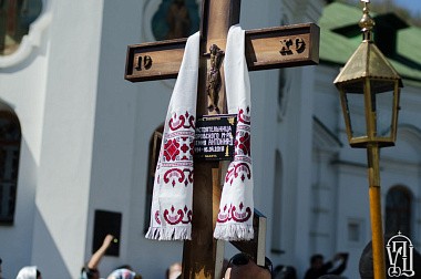 Перед чином отпевания по благословению Предстоятеля Украинской Православной Церкви управляющий делами Украинской Православной Церкви митрополит Бориспольский и Броварской Антоний совершил Божественную литургию в главном храме Флоровского монастыря в сослужении архиепископа Нежинского и Прилукского Климента, епископа Золотоношского Иоанна, духовенства украинской столицы.