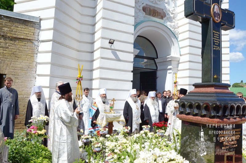 По окончании Литургии на месте захоронения Блаженнейшего митрополита Владимира у колокольни храма Рождества Пресвятой Богородицы в Лавре Блаженнейший митрополит Онуфрий отслужил панихиду.