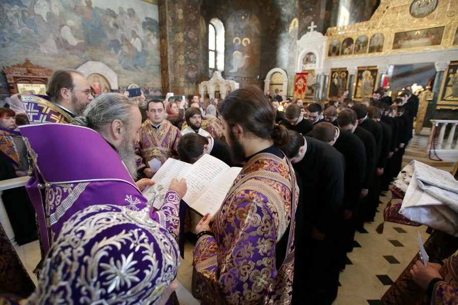 Перед Литургией состоялось традиционное ежегодное посвящение в чтецы воспитанников выпускного курса Киевской Духовной семинарии.