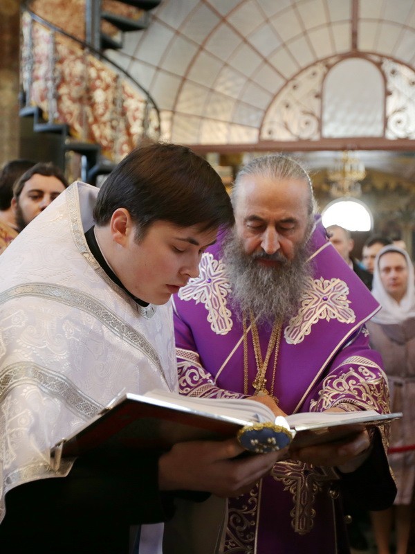 Его Блаженству сослужили управляющий делами Украинской Православной Церкви митрополит Бориспольский и Броварской Антоний, духовенство монастыря, а также гости в священном сане, представлявшие Грузинскую Православную Церковь.