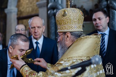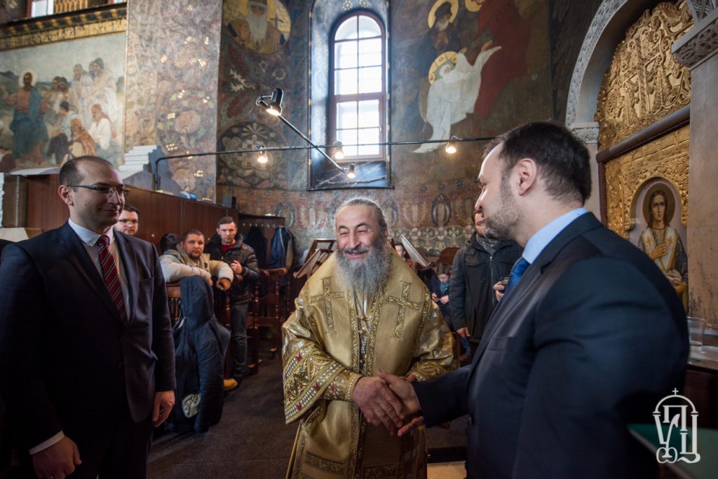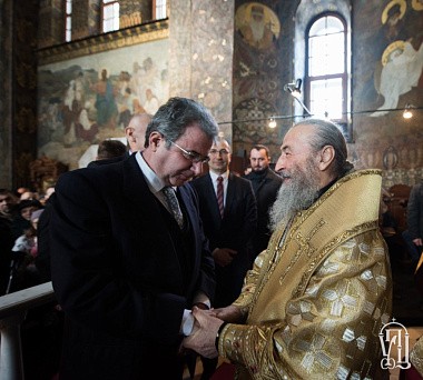 После отпуста Блаженнейший митрополит Онуфрий поздравил послов и представителей посольств стран, большинство населения которых исповедует Православие, и обратился с приветственным словом к собравшимся: