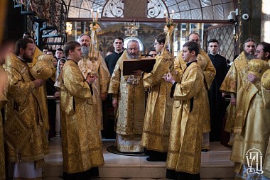 Накануне Блаженнейший владыка возглавил всенощное бдение в этом же храме.