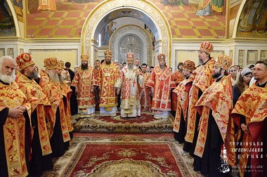За Литургией Его Блаженству сослужили: архиепископ Бучанский Пантелеимон; епископ Макаровский Иларий; епископ Ирпенский Климент, а также духовенство монастыря.