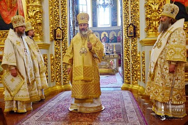 В сам день праздника Его Блаженству сослужили наместник обители митрополит Вышгородский и Чернобыльский Павел, архиепископ Бучанский Пантелеимон, архиепископ Запорожский и Мелитопольский Лука, архиепископ Макаровский Иларий, а также духовенство монастыря.