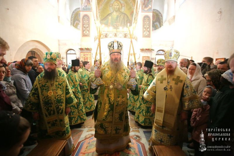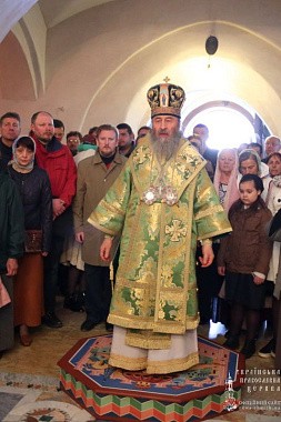 Его Блаженству сослужили: епископ Обуховский Иона; епископ Ирпенский Климент; наместник обители архимандрит Кассиан (Шостак); духовенство монастыря.