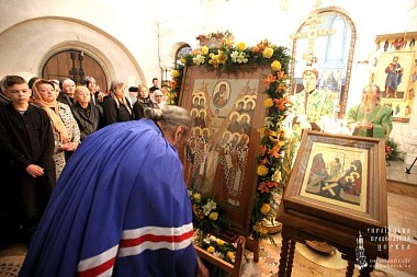 По завершении богослужения Блаженнейший владыка возглавил молебное пение перед иконой Собора преподобных и преподобномучеников Зверинецких. После молитвы святым митрополит Онуфрий поздравил архиереев, наместника обители, духовенство и мирян с 5-й Неделей Великого поста и днем памяти преподобных Зверинецких.