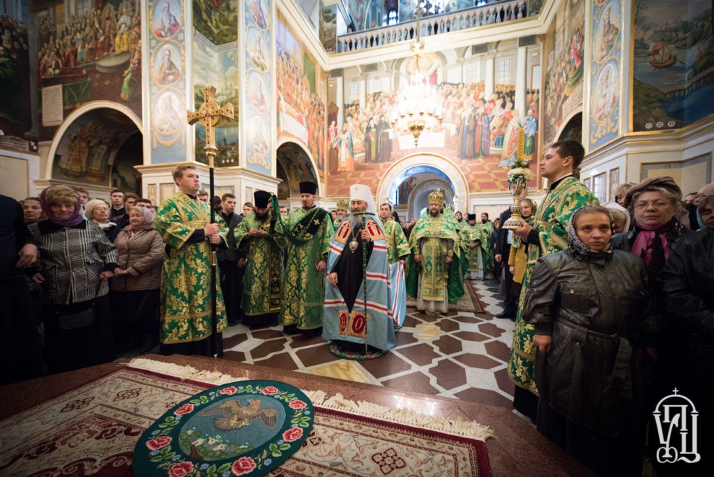 Его Блаженству сослужили наместник обители митрополит Вышгородский и Чернобыльский Павел, митрополит Николаевский и Очаковский Питирим, архиепископы Бучанский Пантелеимон, архиепископ Макаровский Иларий, архиепископ Ровеньковский и Свердловский Пантелеимон, архиепископ Ирпенский Климент, епископ Фастовский Дамиан, а также духовенство монастыря и гости в священном сане.
