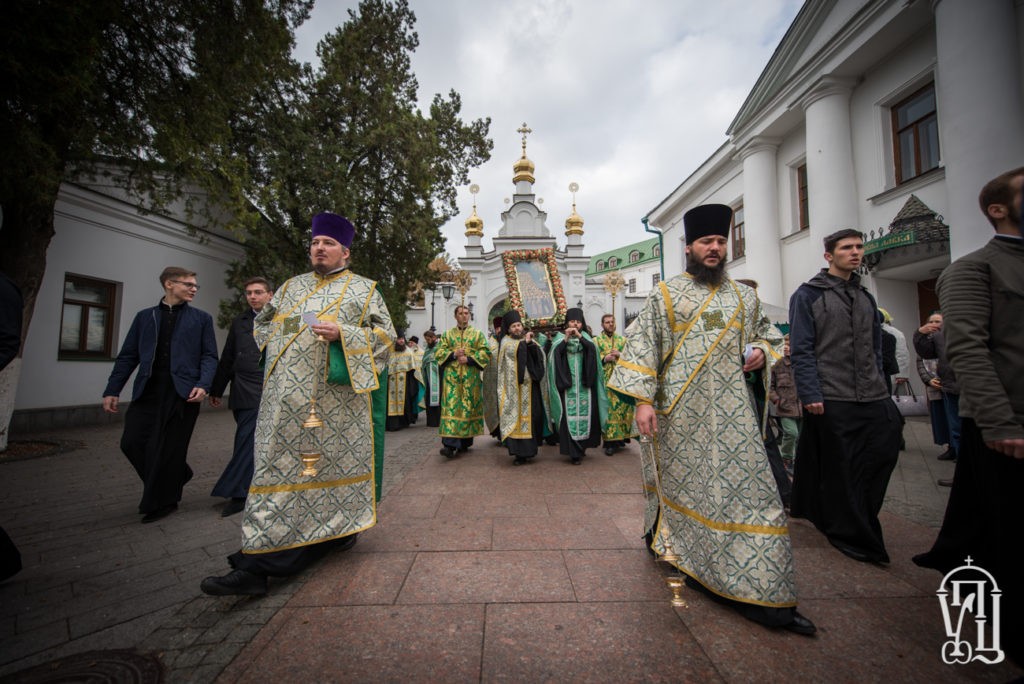 По окончании Божественной литургии Предстоятель Украинской Православной Церкви возглавил крестный ход к Ближним пещерам, где был совершен молебен преподобным Киево-Печерским.