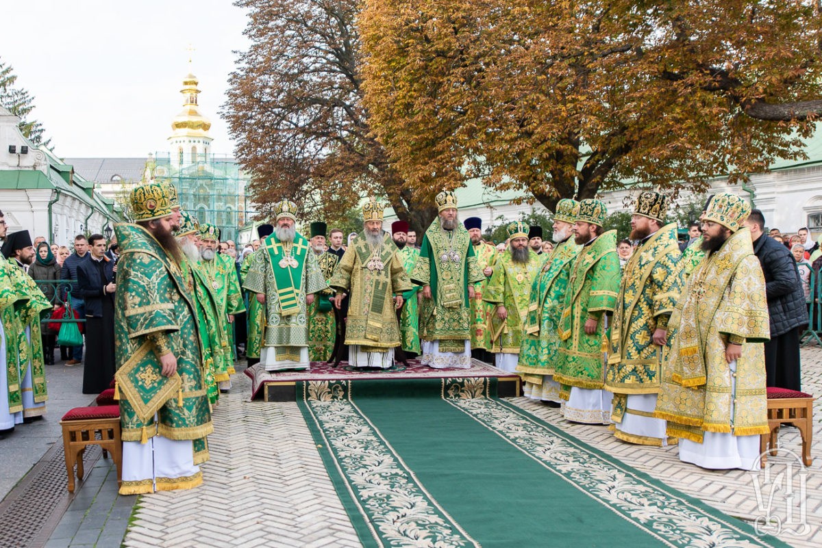 11 октября 2020 года, в Неделю 18-ю по Пятидесятнице, день Собора преподобных отцов Киево-Печерских, в Ближних пещерах почивающих, Блаженнейший митрополит Киевский и всея Украины Онуфрий совершил Божественную литургию на площади перед Успенским собором Киево-Печерской лавры.