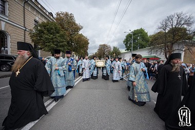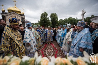 По окончании Божественной литургии Предстоятель Украинской Православной Церкви возглавил крестный ход к Ближним пещерам Киево-Печерской лавры, где состоялся праздничный молебен.
