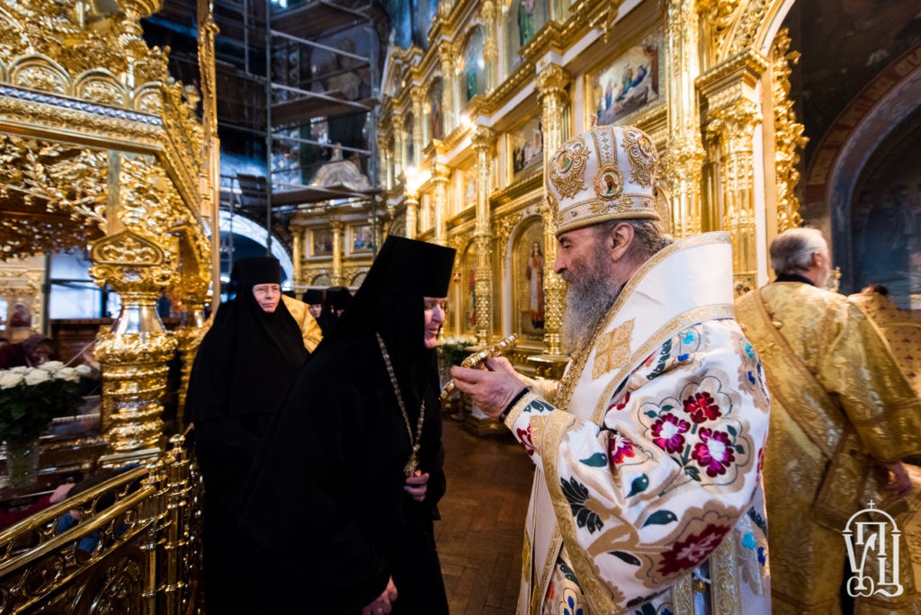 Его Блаженству сослужили председатель Отдела внешних церковных связей Украинской Православной Церкви митрополит Луганский и Алчевский Митрофан, епископ Фастовский Дамиан, духовенство монастыря и гости в священном сане.