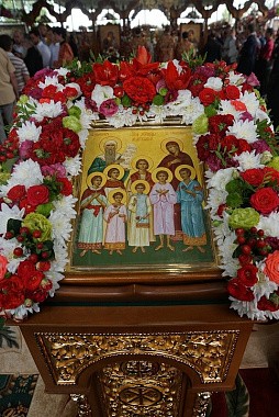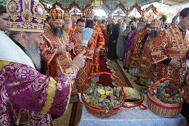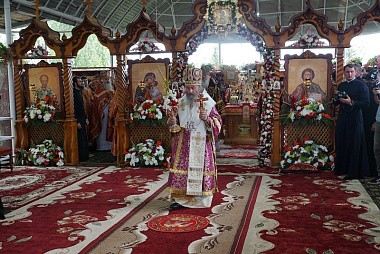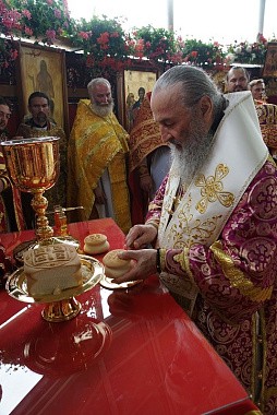 Я всех поздравляю со святым Успенским постом. Желаю сестрам святой обители и игумении Августе, всем священникам, которые здесь служат, всем паломникам, которые сюда пришли, Божиего благословения. Чтобы молитвами святых мучеников Маккавеев и силой Честного Животворящего Креста Господь нас хранил в добром здравии и благочестии. С праздником всех!»