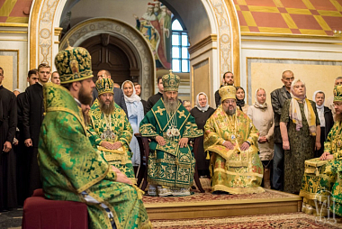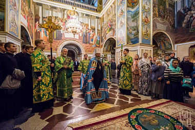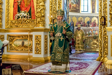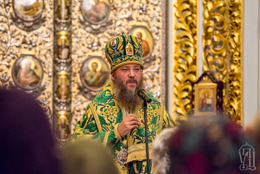 Богослужение завершилось молебном перед иконой Собора преподобных Дальних пещер. После отпуста Блаженнейший владыка поздравил паству с праздником, пожелал верующим всего необходимого для земной жизни и вечного спасения и благословил всех.