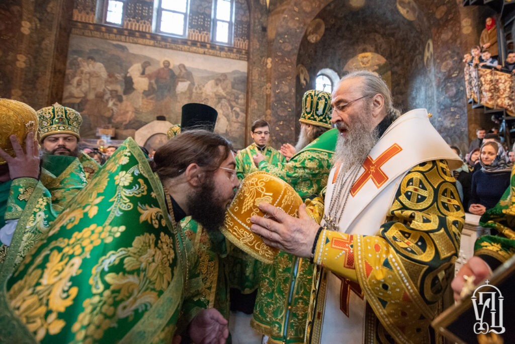 Его Блаженству сослужили наместник обители митрополит Вышгородский и Чернобыльский Павел, управляющий делами Украинской Православной Церкви митрополит Бориспольский и Броварской Антоний, митрополит Могилев-Подольский и Шаргородский Агапит, архиепископ Гурий (Кузьменко), архиепископ Роменский и Бурынский Иосиф, архиепископ Северодонецкий и Старобельский Никодим, архиепископ Львовский и Галицкий Филарет, архиепископ Боярский Феодосий, архиепископ Конотопский и Глуховский Роман, архиепископ Нежинский и Прилукский Климент, архиепископ Фастовский Дамиан, епископ Васильковский Николай, епископ Барышевский Виктор, епископ Белогородский Сильвестр, духовенство монастыря.