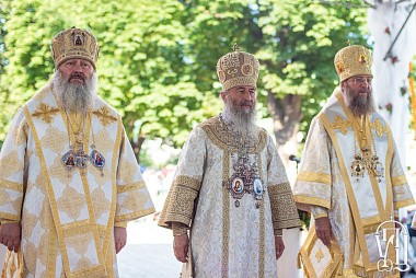 После отпуста Литургии архипастырь поздравил паству с праздником Крещения Руси. Затем священнослужители и верующие во главе с Предстоятелем отправились крестным ходом к Дальним пещерам Лавры, где был отслужен молебен святому равноапостольному князю Владимиру, а верующих окропили святой водой.
