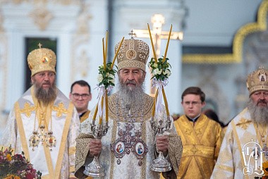 Накануне Блаженнейший митрополит Онуфрий возглавил праздничное всенощное бдение на Соборной площади Свято-Успенской Киево-Печерской лавры.