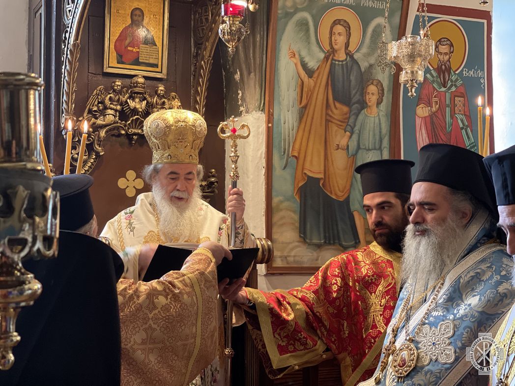 Его Блаженству сослужили архиепископ Константинский Аристарх, архиепископ Севастийский Феодосий, митрополит Еленопольский Иоаким и клирики Иерусалимской Патриархии.