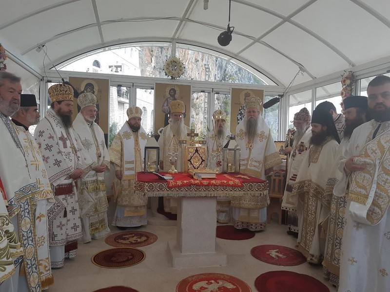 В проповеди митрополит Амфилохий поприветствовал гостей, в том числе епископа Арсения, и передал памятные подарки митрополиту Льву и епископу Арсению.