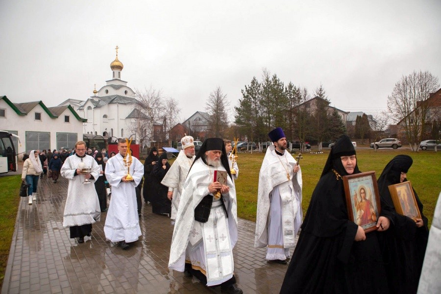 Его Преосвященству сослужили секретарь Полоцкой епархии протоиерей Александр Петлицкий и клирик монастыря иеромонах Аристарх (Шаробайко). Диаконский чин совершили диаконы Владимир Джежора и Борис Мармузевич.
