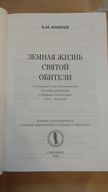 В ноябре 2018 года в издательстве международного историко-литературного журнала «Странникъ» г. Смоленска вышла в свет книга «Земная жизнь святой обители. Смоленский Спасо-Вознесенский женский монастырь в архивных документах XVII–XX веков». Автор книги – смоленский искусствовед, краевед и журналист В.М. Аникеев.