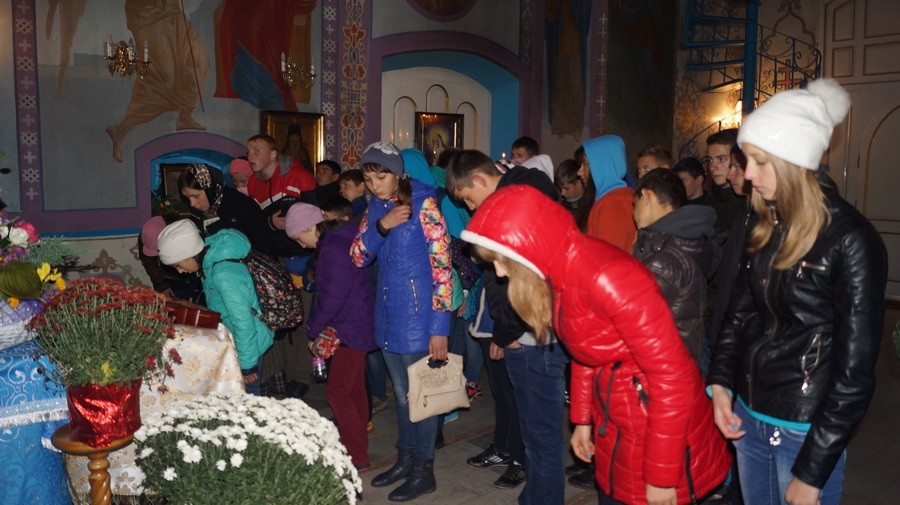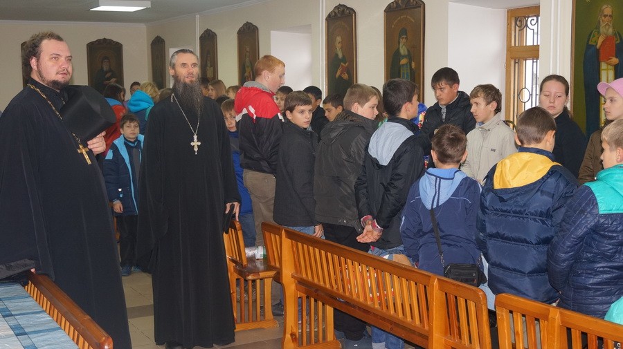 В Аннозачатьевском храме монастыря был отслужен молебен; детей помазали святым елеем, окропили святой водой. Во время молебна иеромонаху Лукиану сослужил насельник Лавры иеромонах Иннокентий, несущий послушание в отделе информации и связей с общественностью. Отец Иннокентий общался с волонтерами, преподавателями и родителями, сопровождавшими детей.