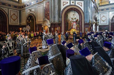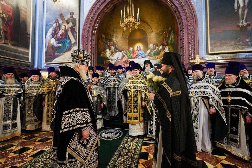 12 апреля 2023 года, в среду Страстной седмицы, Святейший Патриарх Московский и всея Руси Кирилл в кафедральном соборном Храме Христа Спасителя в Москве совершил последнюю в этом году Литургию Преждеосвященных Даров.