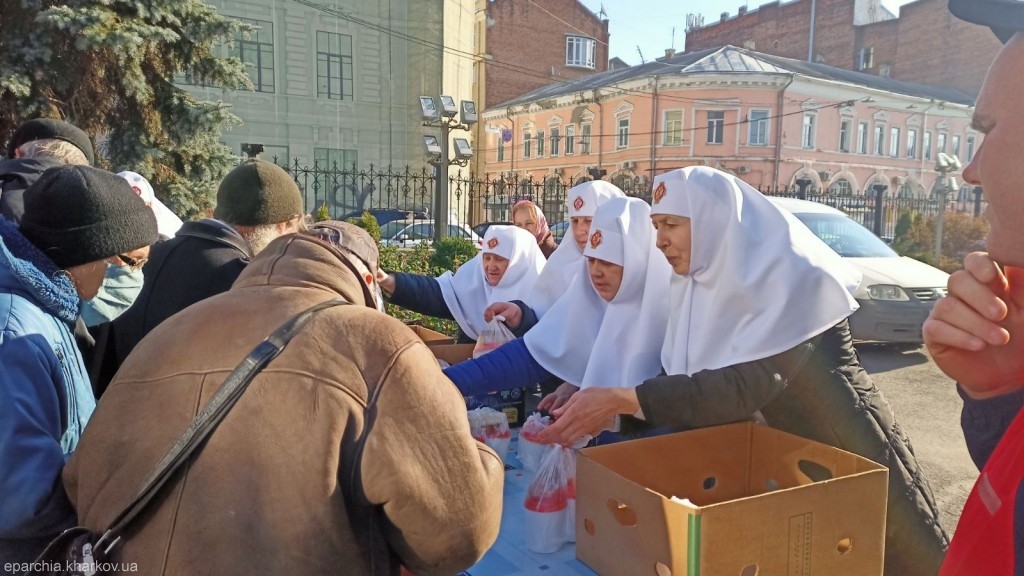 16 ноября 2021 года сестры милосердия во главе с духовником протоиереем Виталием Мартынюком провели первую благотворительную акцию: по благословению митрополита Харьковского и Богодуховского Онуфрия организовали благотворительный обед на территории Успенского собора.