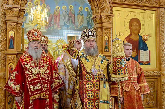 За богослужением молились: митрополит Днепропетровский и Павлоградский Ириней, митрополит Тверской и Кашинский Виктор, митрополит Криворожский и Никопольский Ефрем, архиепископ Уральский и Актюбинский Антоний, архиепископ Чимкентский и Таразский Елевферий, епископ Костанайский и Рудненский Анатолий, епископ Талдыкорганский Нектарий, епископ Каскеленский Геннадий, епископ Павлодарский и Экибастузский Варнава, епископ Карагандинский и Шахтинский Севастиан, епископ Усть-Каменогорский и Семипалатинский Амфилохий, епископ Кокшетауский и Акмолинский Серапион, епископ Петропавловский и Булаевский Владимир.