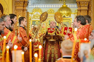 После славления митрополит Александр обратился к собравшимся с проповедью.
