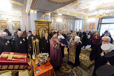 На сугубой ектении архипастыри вознесли молитву о мире и преодолении междоусобной брани на Украине.