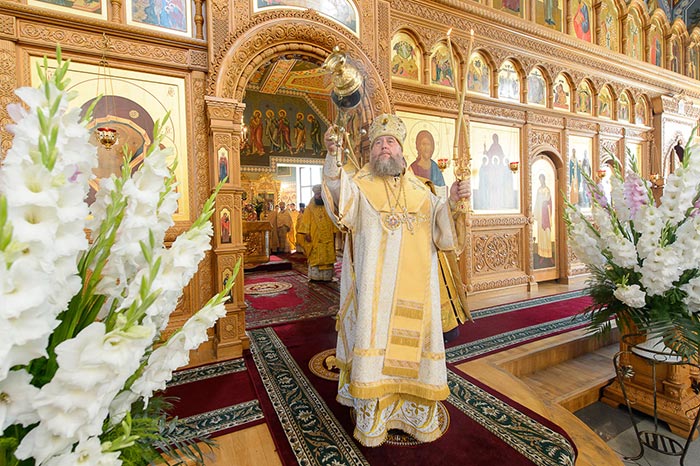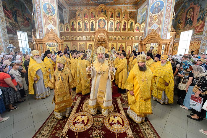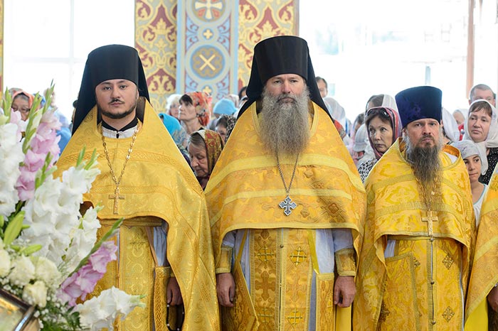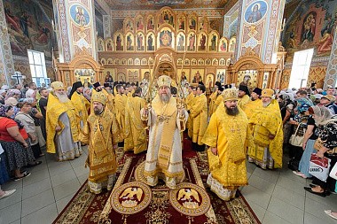 Богослужение завершилось славлением празднику Успения Пресвятой Богородицы и литией у гробницы митрополита Иосифа (Чернова), после чего митрополит Александр поздравил Преосвященных епископов, игумению Любовь, духовенство и прихожан с особым днем для православных казахстанцев, почитающих память митрополита Иосифа, и обратился к верующим с проповедью.
