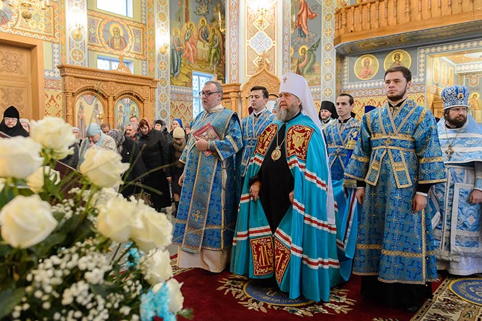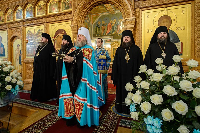 Его Высокопреосвященству сослужили: епископ Талдыкорганский Нектарий, епископ Усть-Каменогорский и Семипалатинский Амфилохий, епископ Кокшетауский и Акмолинский Серапион, епископ Петропавловский и Булаевский Владимир; благочинный храмов Алма-Аты, настоятель Свято-Никольского собора протоиерей Валерий Захаров, благочинный Астанайского церковного округа архимандрит Сергий (Карамышев), руководители отделов и комиссий Митрополичьего округа в священном сане, настоятели и духовенство храмов южной столицы Казахстана.