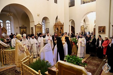 За Литургией в монастырском соборе в честь Всех святых Церкви Русской архипастырю сослужили начальник Миссии архимандрит Александр (Елисов), клирики Русской духовной миссии и Горненского монастыря.