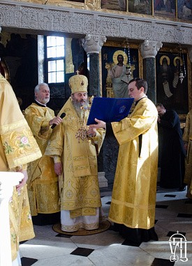 Его Блаженству сослужили: наместник обители митрополит Вышгородский и Чернобыльский Павел; управляющий делами Украинской Православной Церкви митрополит Бориспольский и Броварской Антоний; архиепископы Гурий (Кузьменко), Бучанский Пантелеимон, Макаровский Иларий и братия монастыря в священном сане.