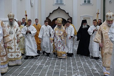 Его Блаженству сослужили митрополит Тернопольский и Кременецкий Сергий, наместник обители митрополит Почаевский Владимир, ректор Почаевской духовной семинарии епископ Шумский Серафим, духовенство монастыря и гости в священном сане.