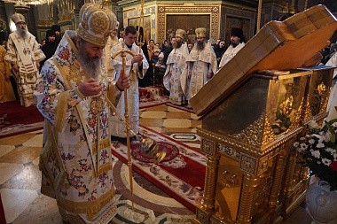 Блаженнейший владыка, в свою очередь, поздравил наместника Лавры, братию и всех верующих с праздником и благословил паству.