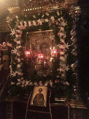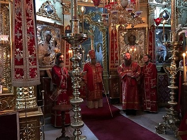 Вечером того же дня в главном храме Пантелеимонова монастыря было совершено праздничное всенощное бдение.