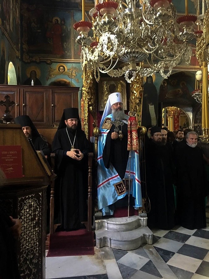 После праздничной братской трапезы с чином о панагии митрополит Кирилл и члены официальной делегации Русской Православной Церкви простились с братией Пантелеимоновой обители.