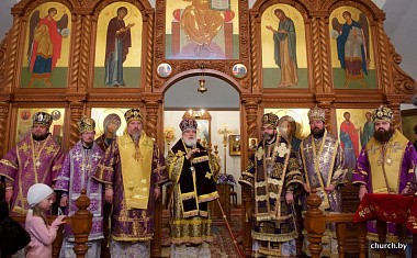 Его Высокопреосвященству сослужили: архиепископ Белостокский и Гданьский Иаков (Польская Православная Церковь); председатель Синодального отдела по делам монастырей и монашеству Белорусского Экзархата епископ Лидский и Сморгонский Порфирий; епископ Гомельский и Жлобинский Стефан; епископ Бобруйский и Быховский Серафим; епископ Борисовский и Марьиногорский Вениамин; епископ Слуцкий и Солигорский Антоний; духовенство Слуцкой епархии.