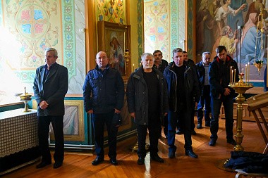 Перед началом осмотра митрополит Георгий совершил в Благовещенской церкви Спасо-Преображенского мужского монастыря молебен Господу нашему Иисусу Христу.