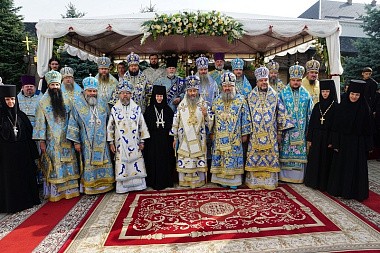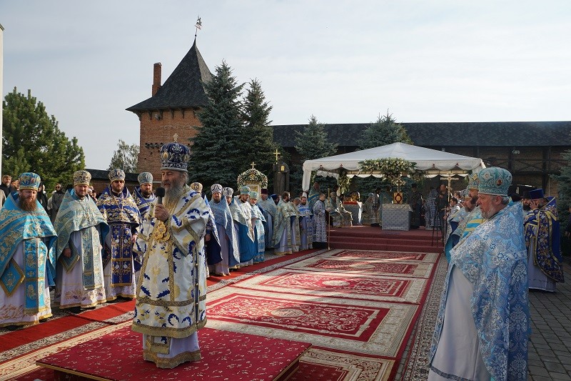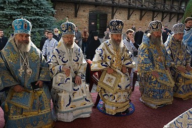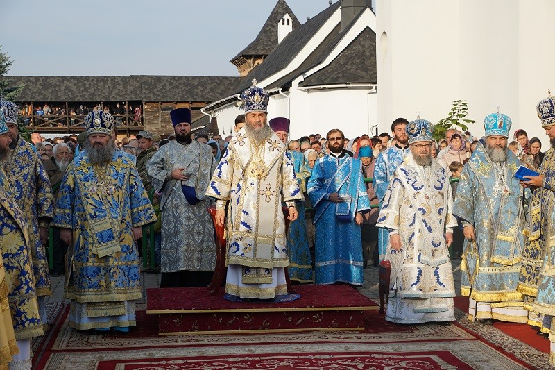 Блаженнейшему владыке сослужили: наместник Свято-Успенской Киево-Печерской Лавры митрополит Вышгородский и Чернобыльский Павел, митрополит Белоцерковский и Богуславский Августин, митрополит Винницкий и Барский Симеон, митрополит Могилев-Подольский и Шаргородский Агапит, архиепископ Бучанский Пантелеимон, архиепископ Житомирский и Новоград-Волынский Никодим, архиепископ Владимир-Волынский и Ковельский Владимир, архиепископ Ровеньковский и Свердловский Пантелеимон, епископ Семятицький Георгий (Польская Православная Церковь), епископ Бородянский Варсонофий, епископ Шепетовский и Славутский Евсевий, епископ Камень-Каширский Нафанаил, а также духовенство монастыря и гости обители в священном сане.